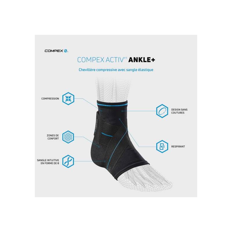 La chevillère Compex Activ' Ankle Plus combine stabilité optimale et confort absolu grâce à sa conception technique innovante qui accompagne chacun de vos mouvements en toute confiance.